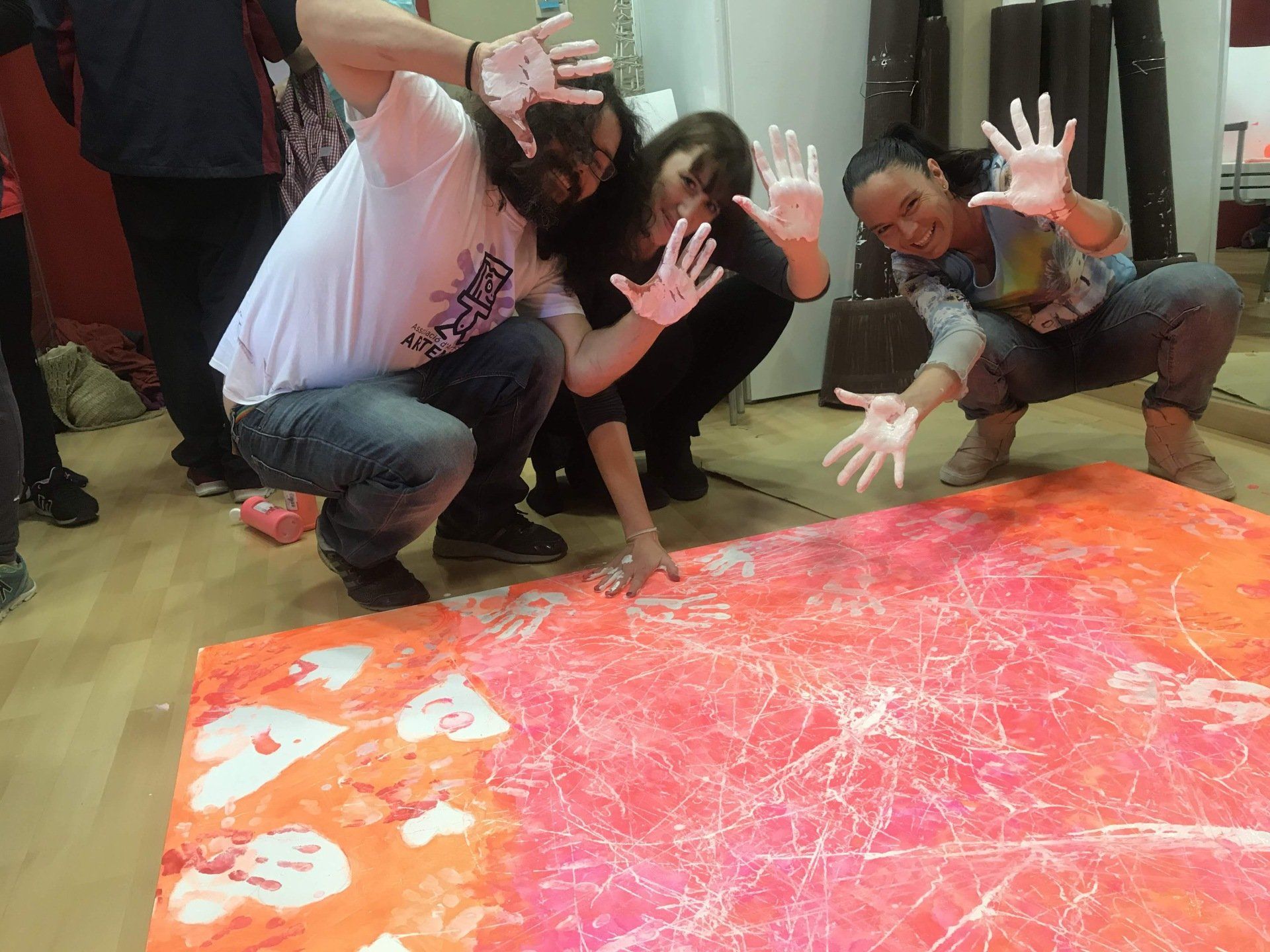 Las personas con diversionalidad funcional de la Asociación Alpi nos presentan una obra muy contemporánea con un estilo figurativo , Naïf y muy colorista llamada “ Tras Nuestra Mirada “.
